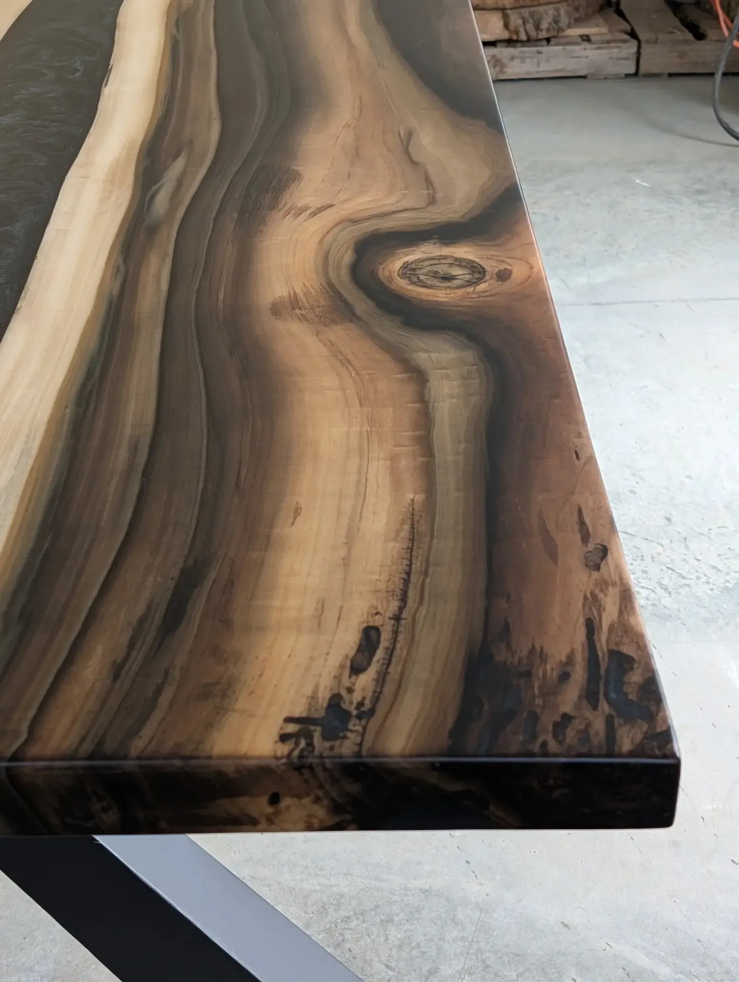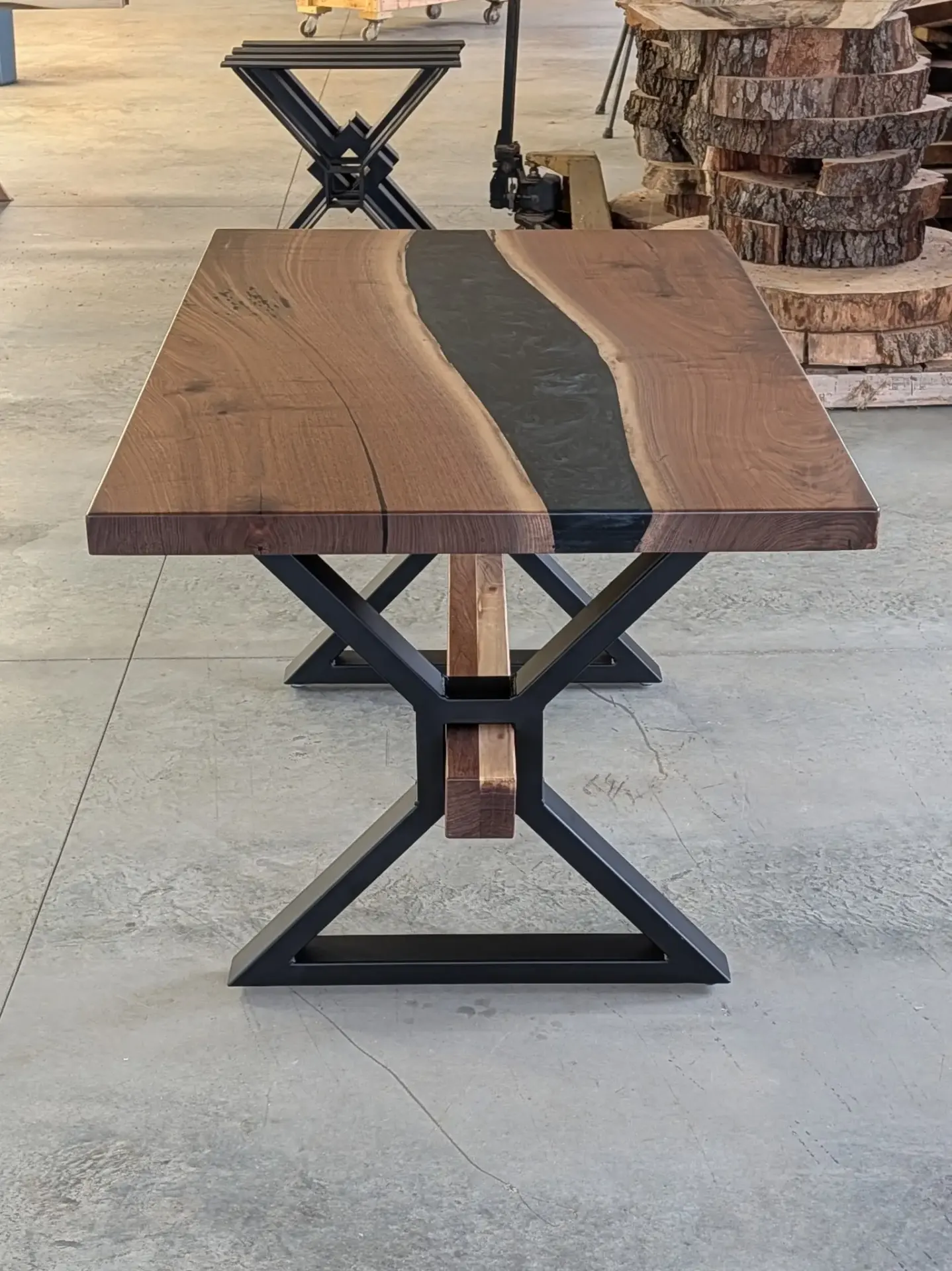 Pricing is for the tabletop only, steel bases and legs are not included. Every order is custom; final pricing is shaped by wood species, epoxy style, and finish detail.